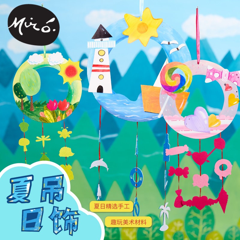 夏日吊饰手工diy儿童创意美术绘画粘贴制作环创装 饰幼儿园材料包