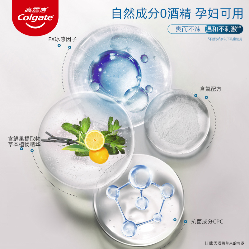 高露洁漱口水孕妇0酒精清新口气除菌女生便携装 接吻饭后漱口 正品