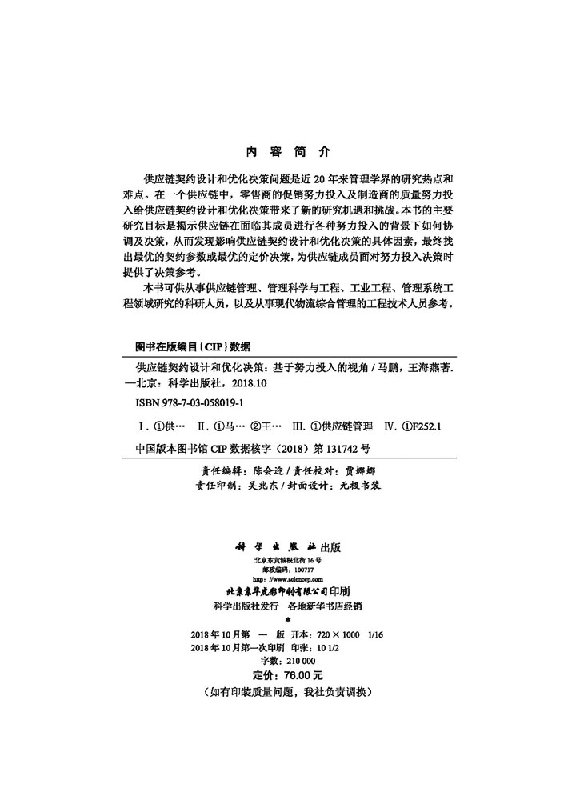 王海燕 马鹏 供应链契约设计和优化决策——基于努力投入 视角