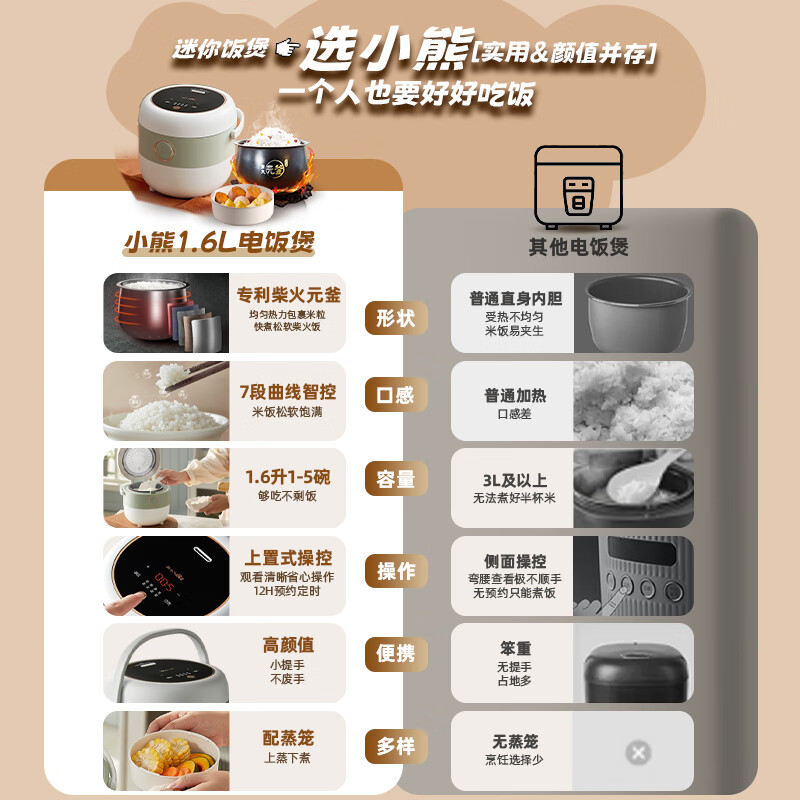 小熊电饭煲家用小型迷你智能预约全自动煮饭锅多功能电饭锅1 2人3