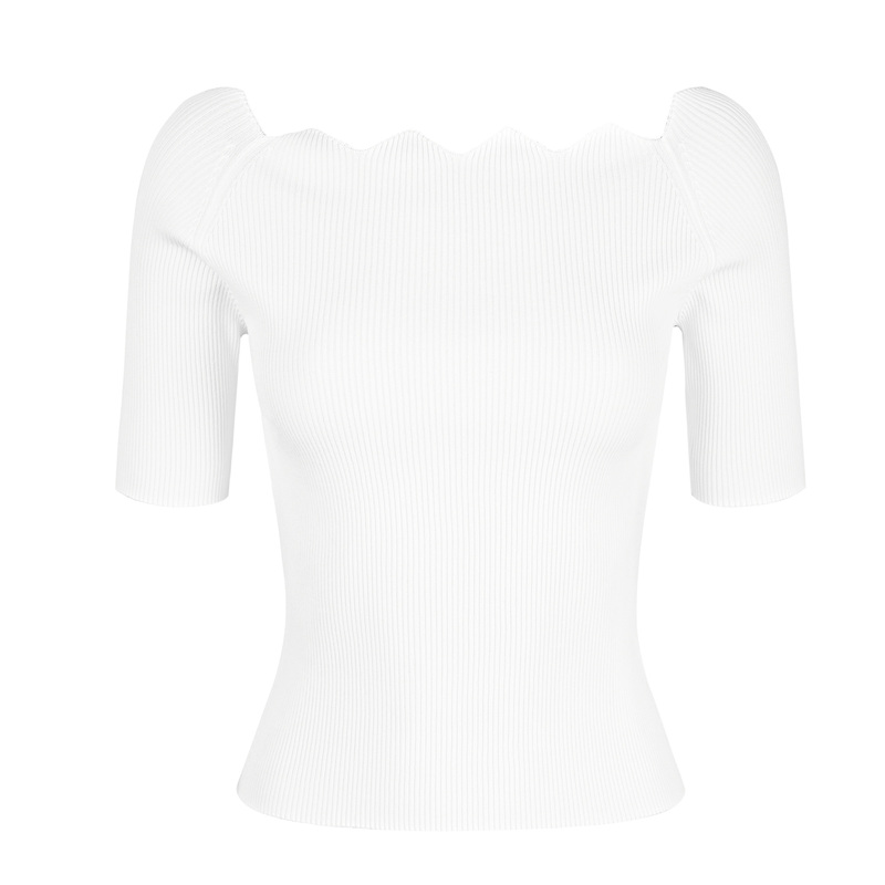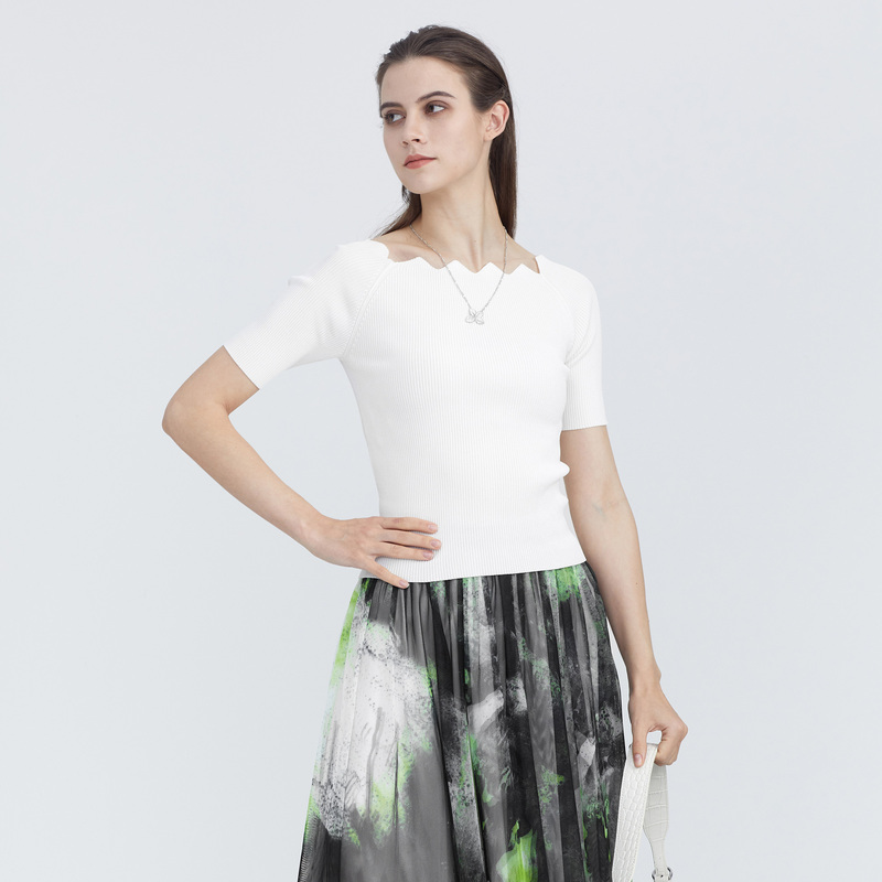 针织衫 sdeer圣迪奥女装 上衣一字领白色中袖 针织短款 S21283508 夏装
