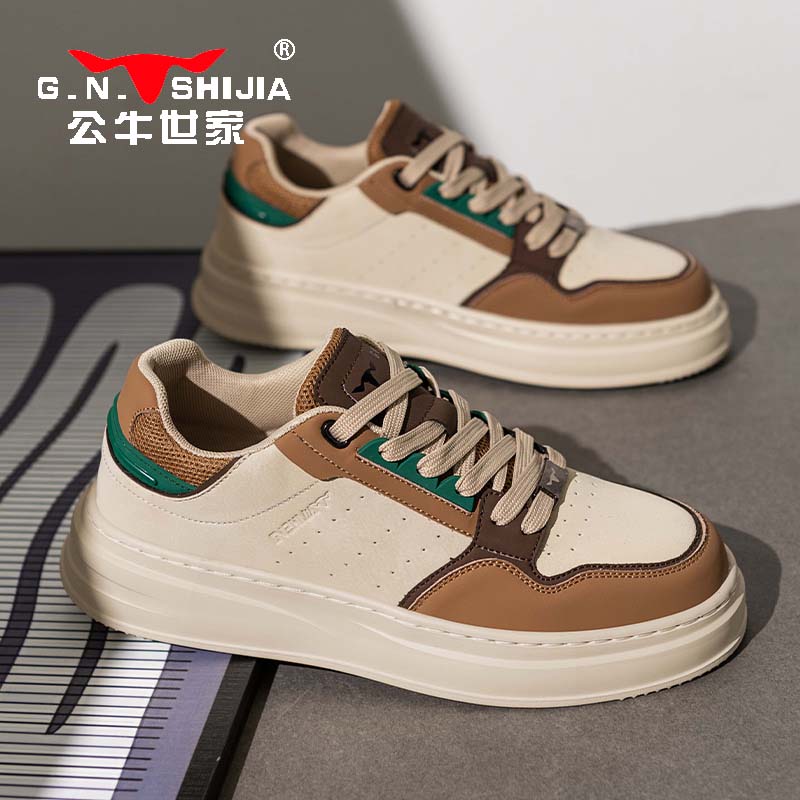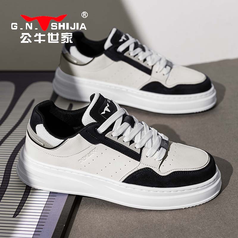 2025夏季 厚底潮鞋 皮面运动休闲板鞋 潮流百搭时尚 男士 公牛世家男鞋