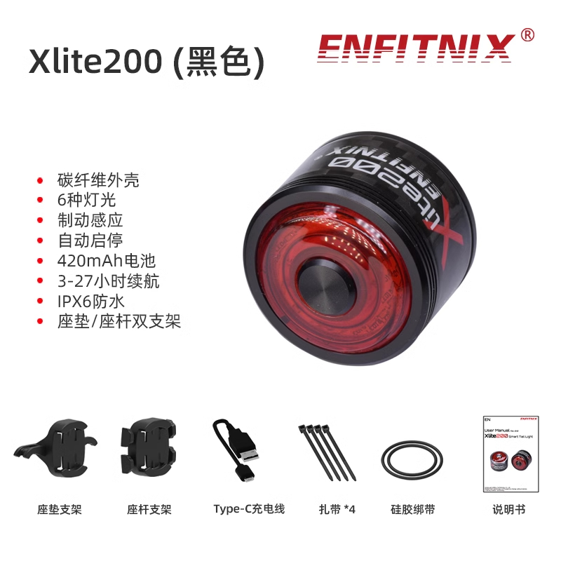 英豪xlite200自行车尾灯智能感应刹车灯山地车夜骑警示灯骑行装 备