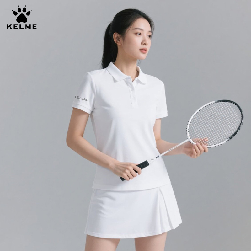 运动T恤女夏季 羽毛球短袖 运动速干翻领上衣 卡尔美polo衫 2025新款