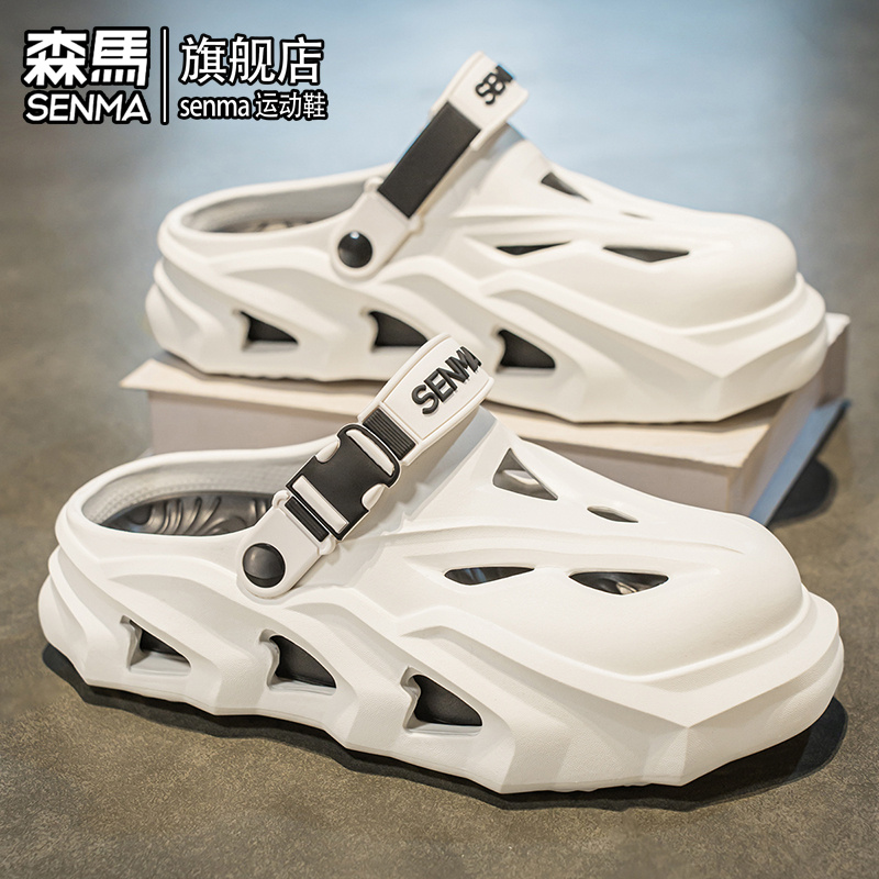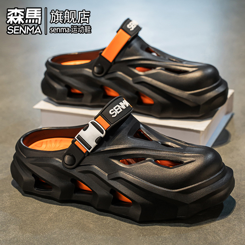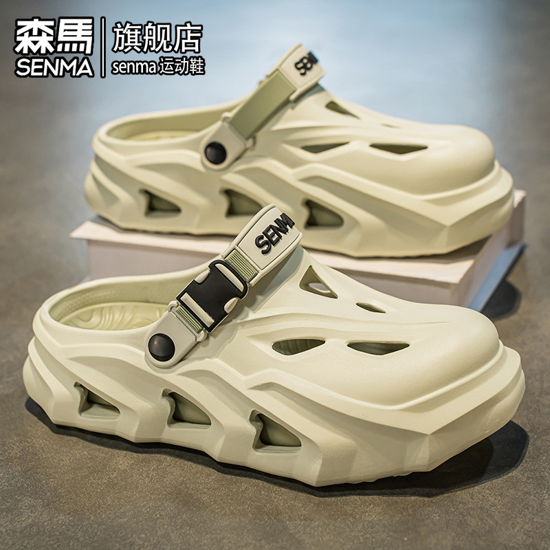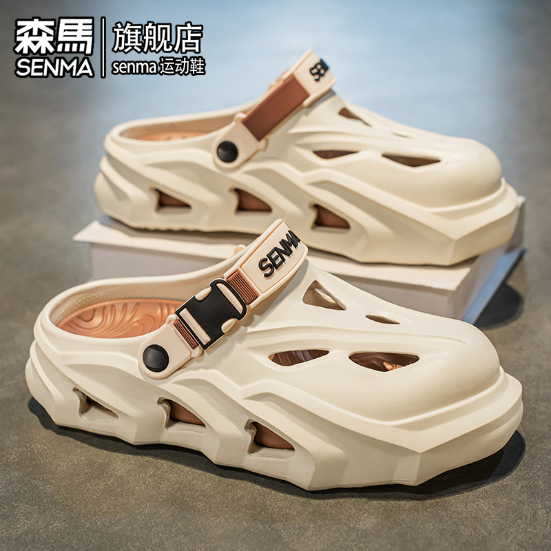 两用踩屎感网红沙滩凉鞋 森马洞洞鞋 外穿厚底防滑包头拖鞋 夏季 男士