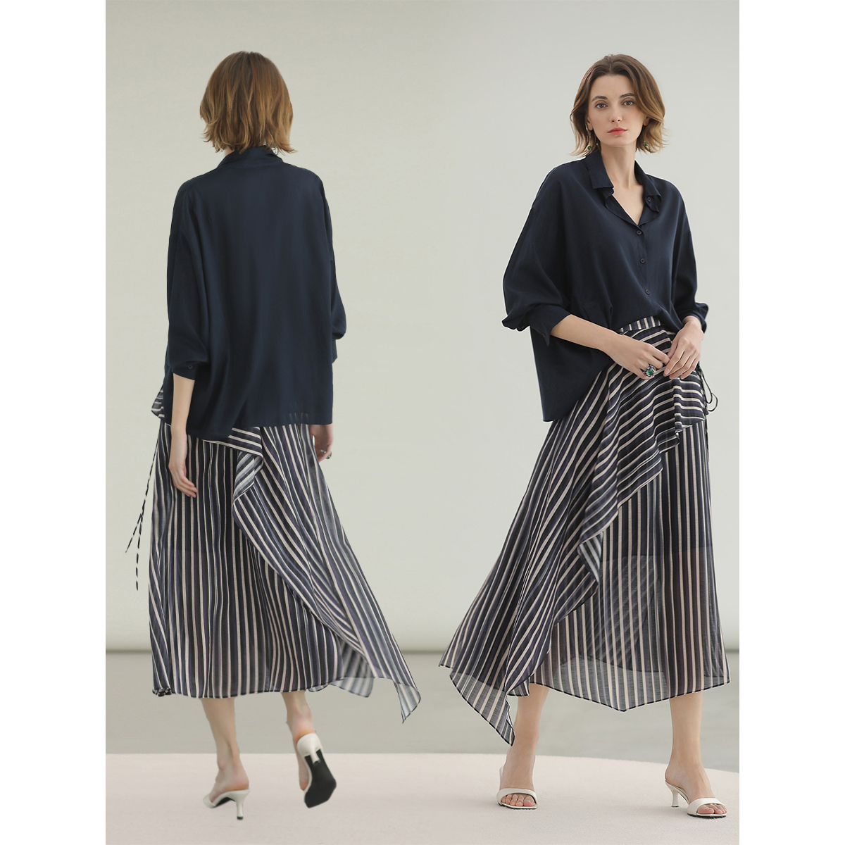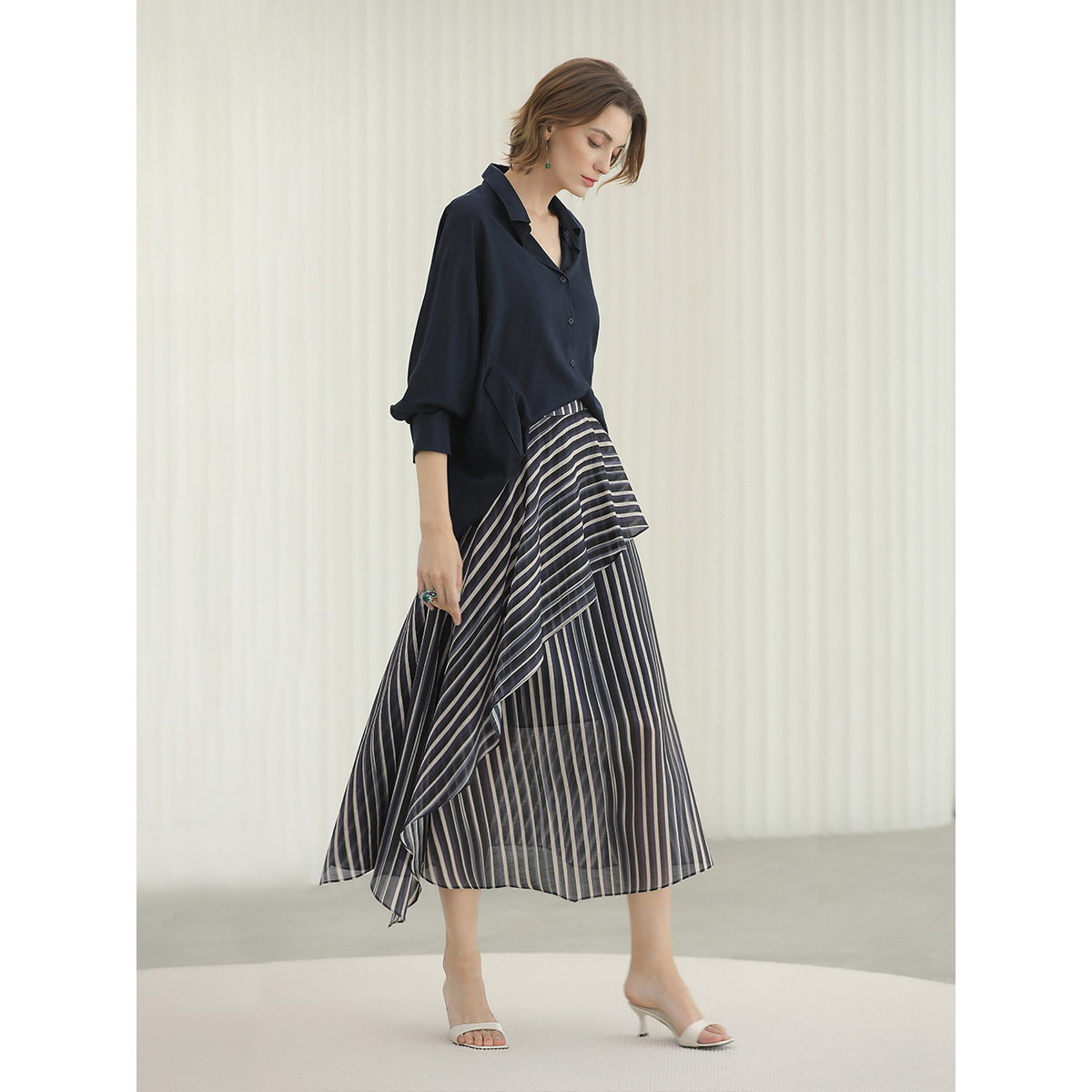COCOBELLA 设计感不规则条纹印花莱赛尔半身裙HS3135 醋酸