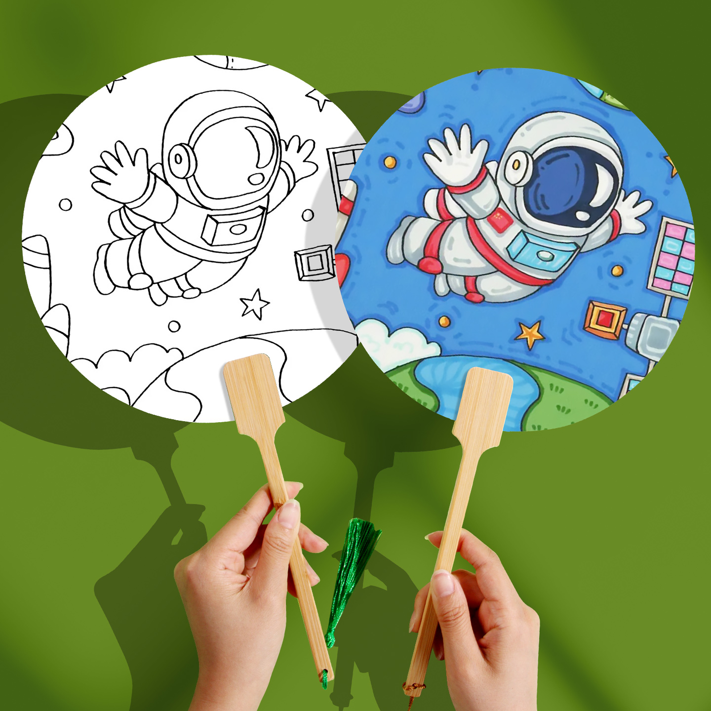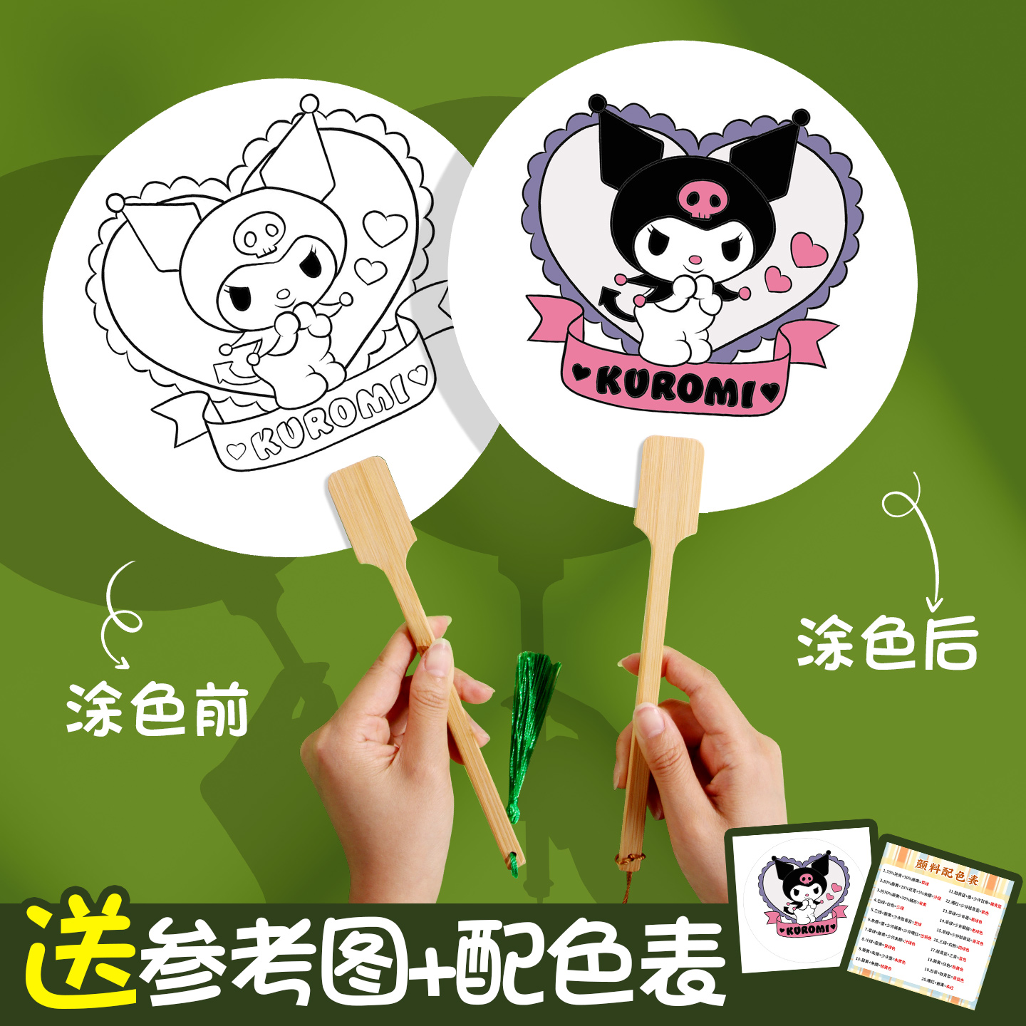 儿童创意diy手工礼物涂鸦填色卡通扇子宣纸绘画团扇幼儿园小礼品