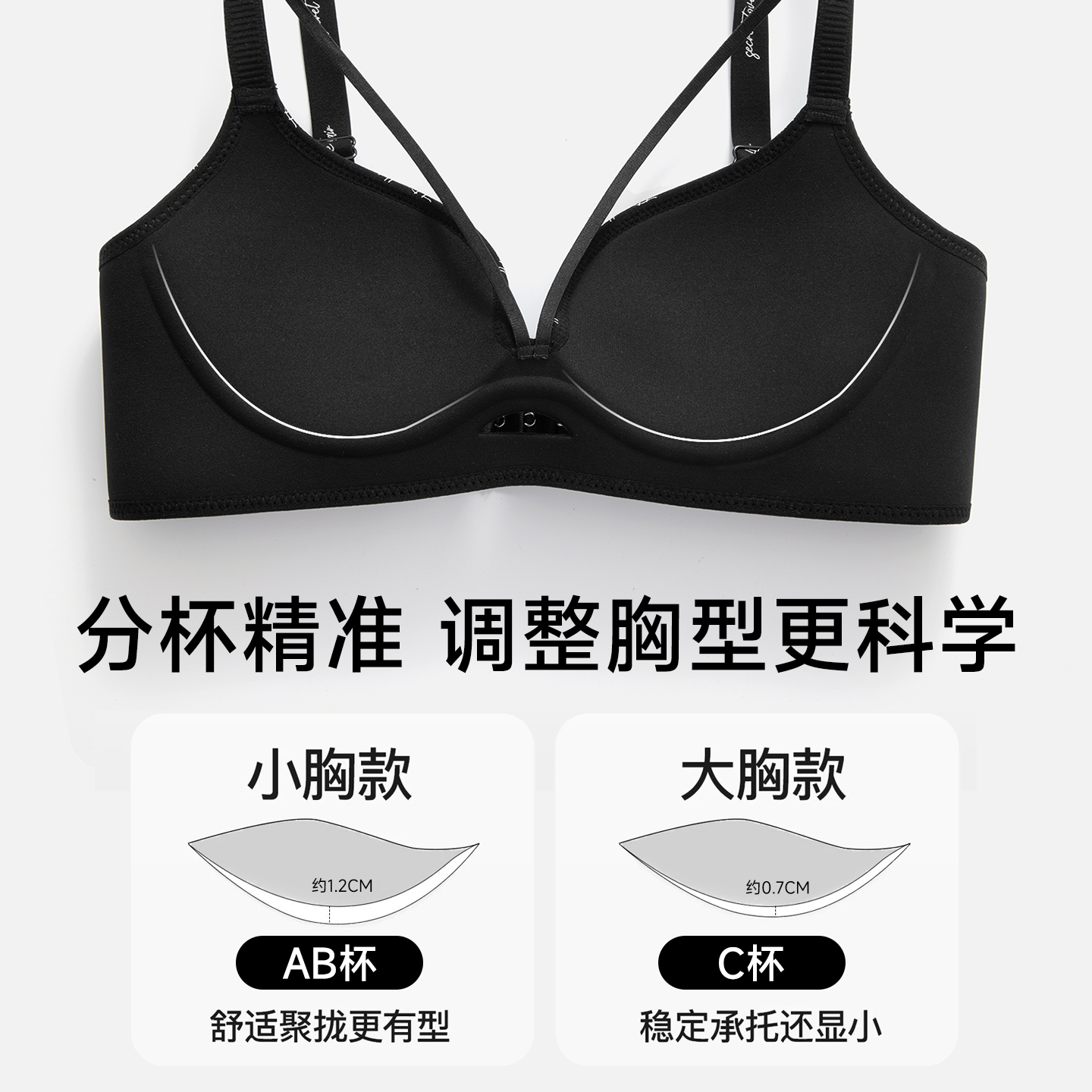新光面上托侧推全罩杯大胸显小文胸 遐无痕内衣女薄款 小青提