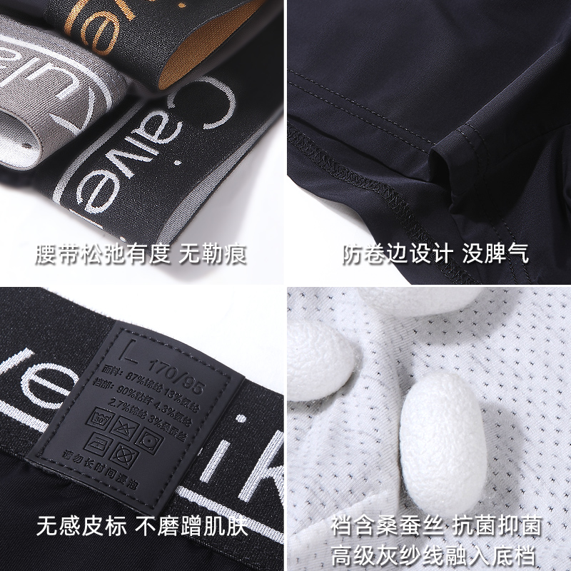 青少年四角短裤 抗菌桑蚕丝裆透气2025新款 头衩夏 男平角裤 冰丝内裤