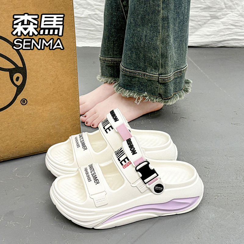 居家休闲户外厚底沙滩凉拖 外穿防滑软底踩屎感凉鞋 森马拖鞋 女夏季