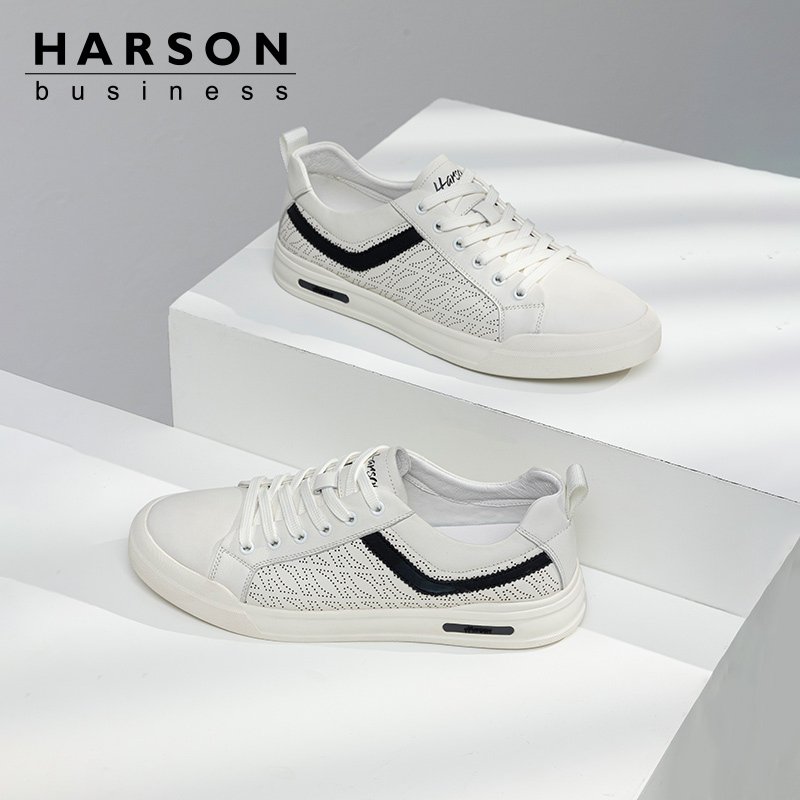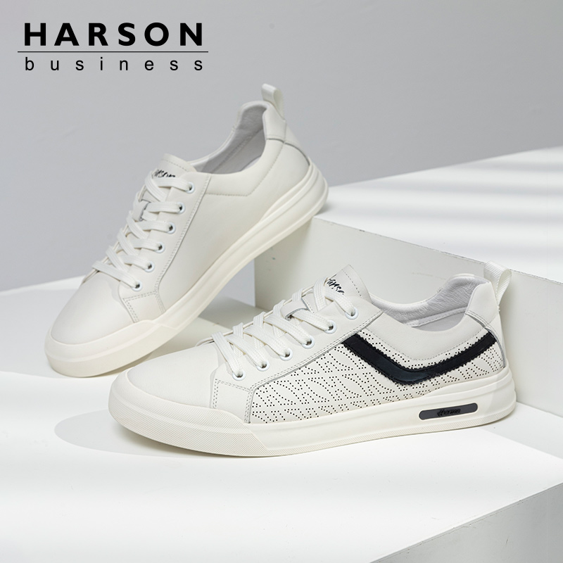 男士 凉鞋 时尚 哈森男鞋 运动休闲鞋 透气软底真皮小白鞋 休闲板鞋 秋季