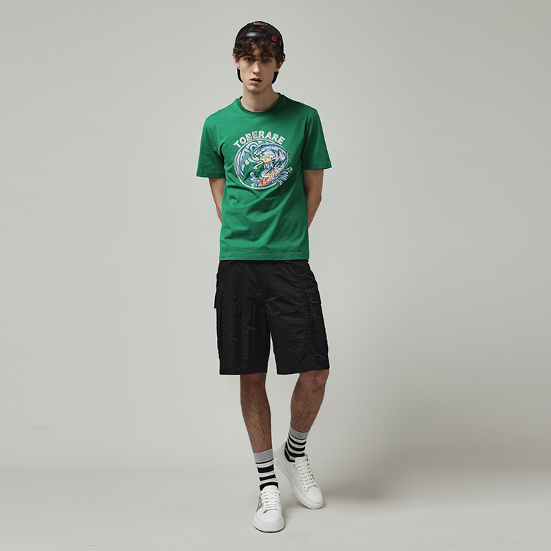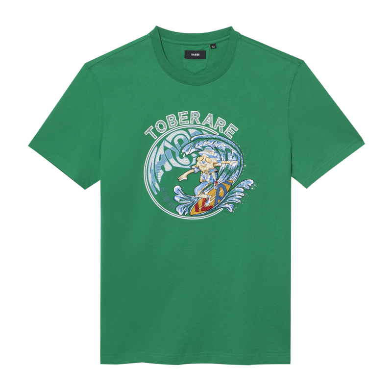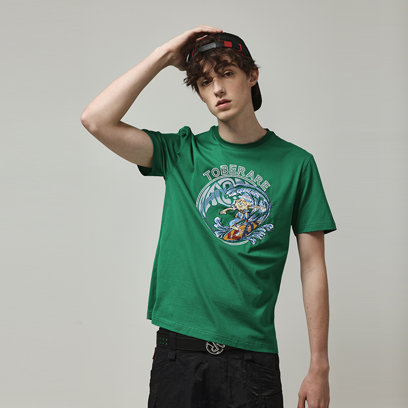 狮子logo刺绣短T绿色圆领短袖 RARE威雅男装 男士 新款 T恤 夏季