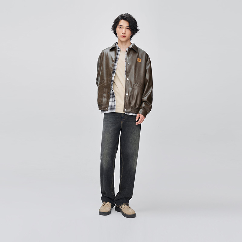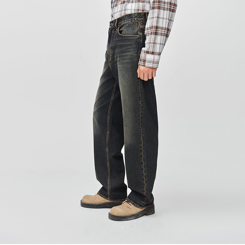 01115689 洗水中腰宽松直筒牛仔长裤 佐丹奴复古风牛仔裤 男秋冬新款