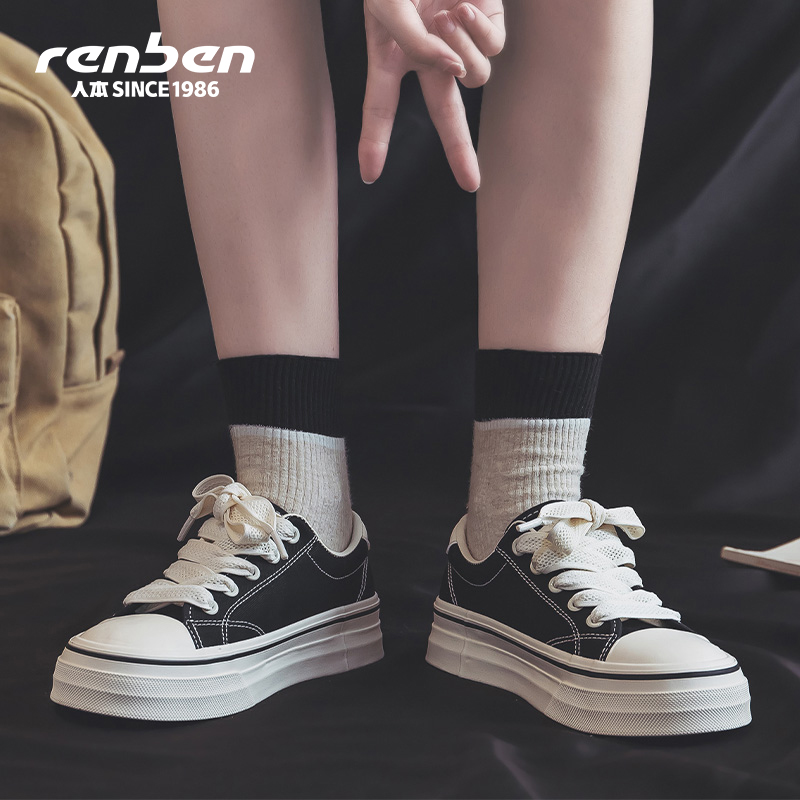 学生休闲运动百搭情侣板鞋 环球厚底黑色帆布鞋 新款 2025秋季 男 男款