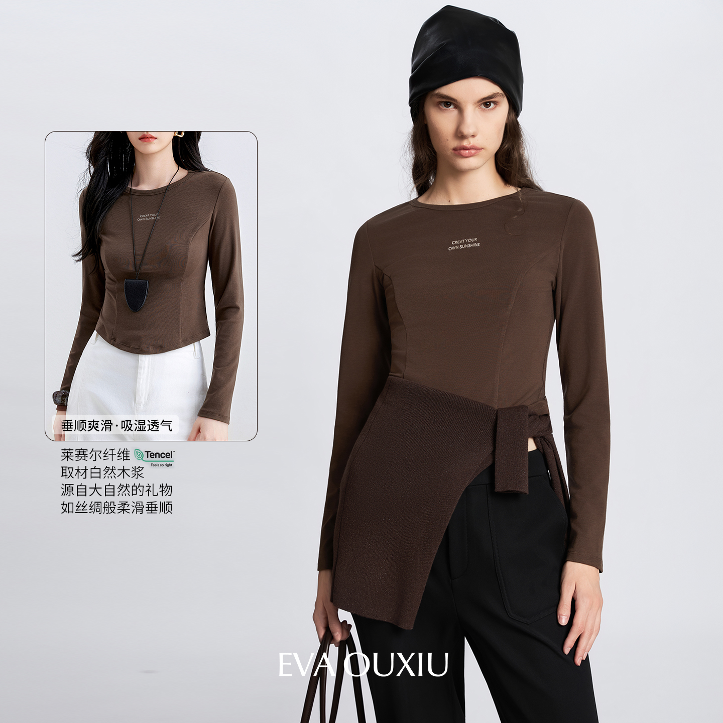 T恤纸片人万搭绵羊毛打底T上衣 莱赛尔圆领长袖 EVAOUXIU 新品