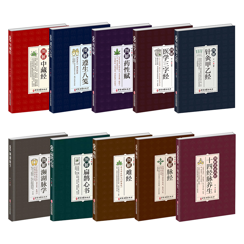 中医古籍出版 图解遵生八笺药性赋医学三字经难经扁鹊心书濒湖脉学针灸甲乙经脉经中藏经黄帝内经十四经脉养生 10册 社 套装
