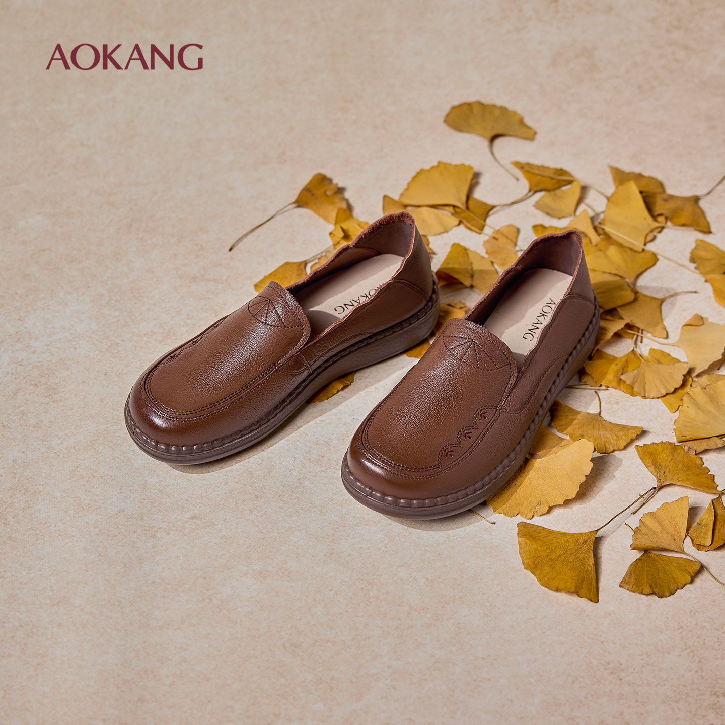 舒软鞋 2025秋季 真皮妈妈鞋 浅口单鞋 奥康 一脚蹬舒适平底鞋 女鞋