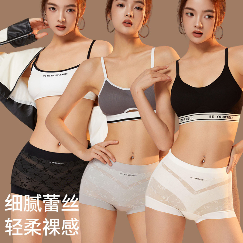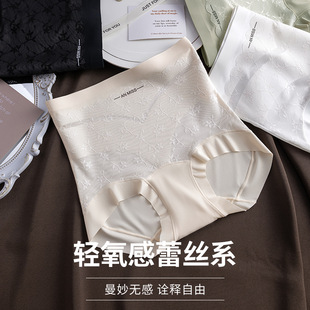 冰丝无痕收腹内裤 女士高腰舒适蚕丝抗菌裆提臀塑形性感蕾丝三角裤