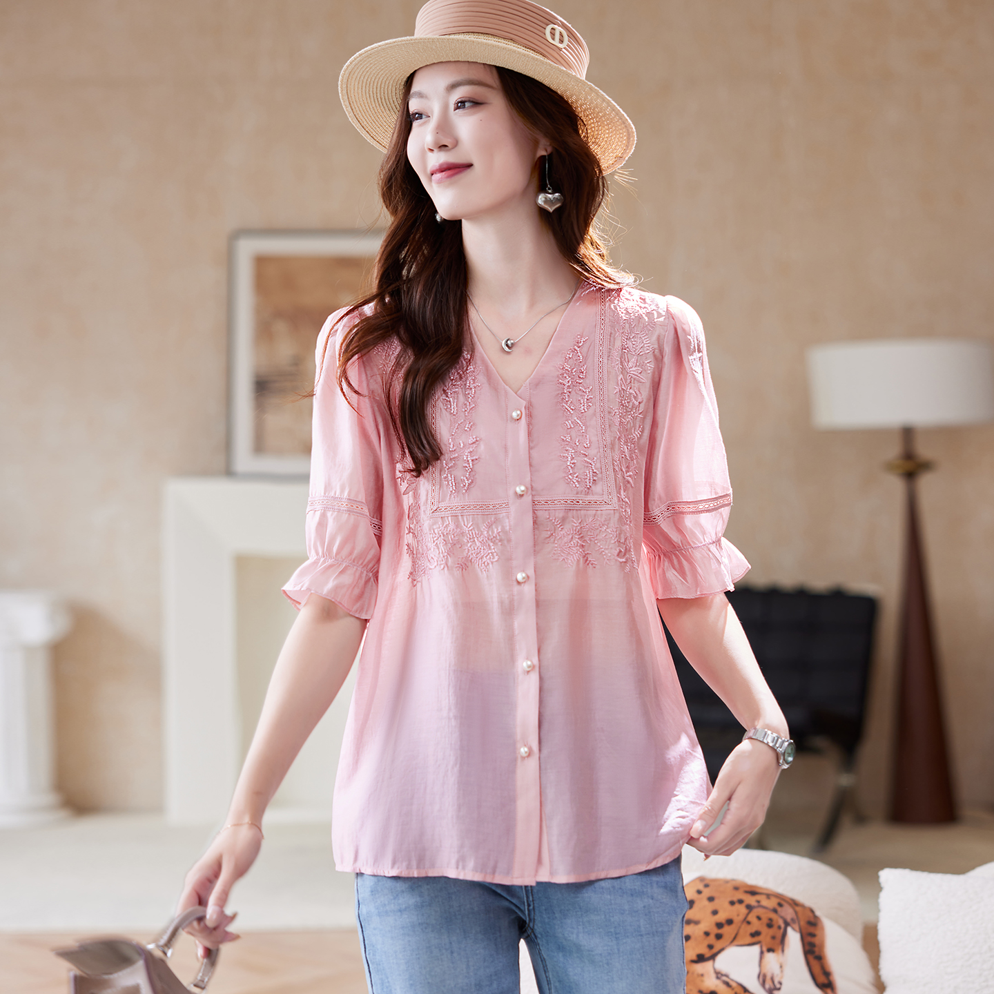 牛仔衬衫 设计师款 荷叶边宽松翻领长袖 秋冬新款 18345222 佐丹奴女装