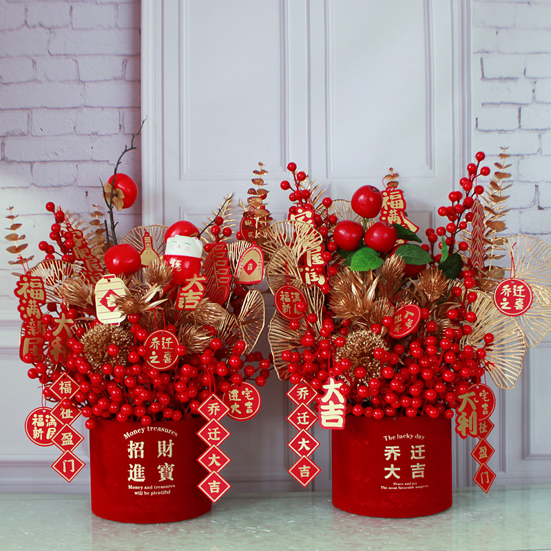 新居客厅装 饰摆件仿真花发财果插花搬家乔迁之喜结婚礼物新婚石榴