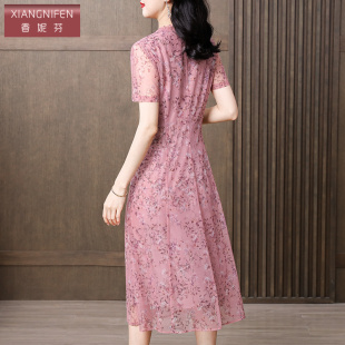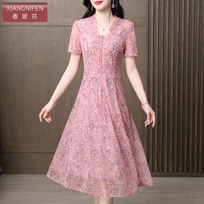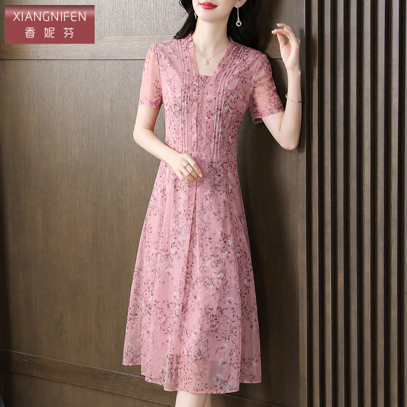 格子拼接假两件短裙微胖MM复古收腰气质裙子 连衣裙女夏季 大码 短袖