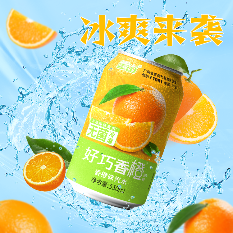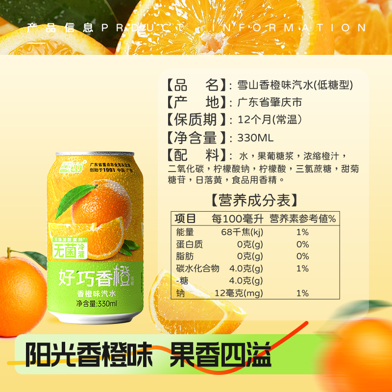 补充维C 橙子橙味碳酸饮料低糖汽水0脂0卡330ml罐装 秒杀