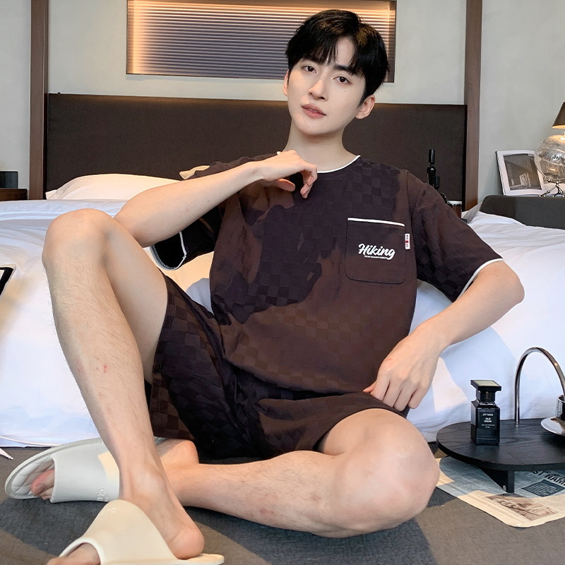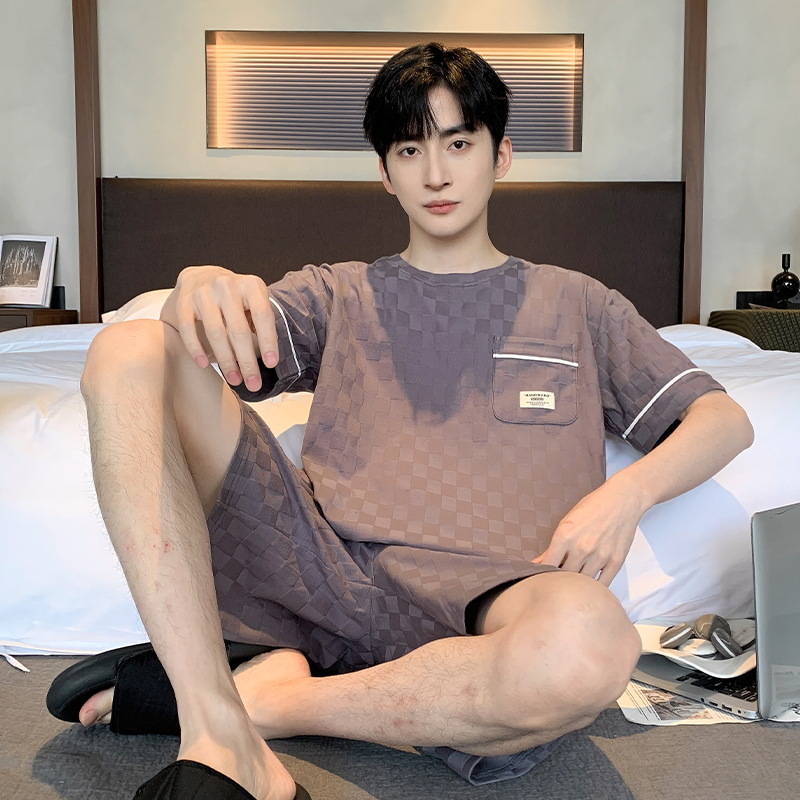 睡衣纯棉短袖 可外穿家居服套装 开衫 青少年大码 2025新款 猫人男士