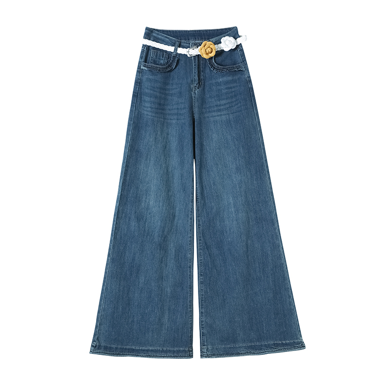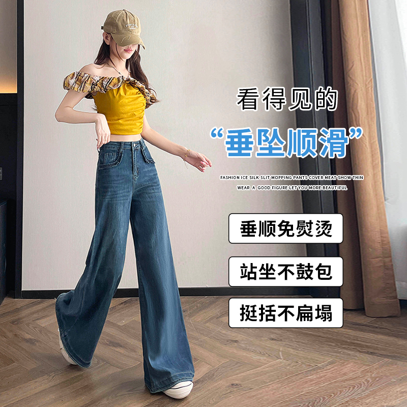 子 高腰显瘦小个子宽松垂感阔腿裤 浅色直筒牛仔裤 女2025年春秋新款