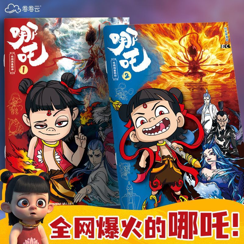 哪咤闹海绘画临摹本儿童控笔线稿涂鸦本简笔线描本小学生涂色本