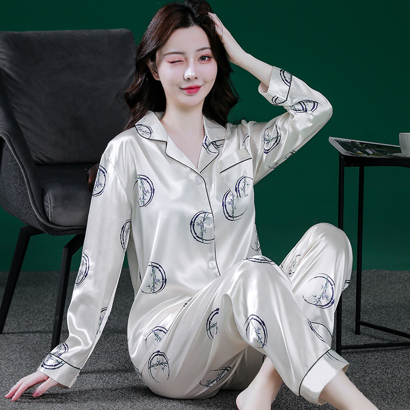 丝绸女睡衣套装 现货2025年春秋季 薄款 长袖 宽松甜美简约冰丝家 新款