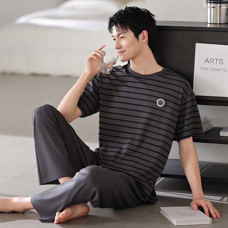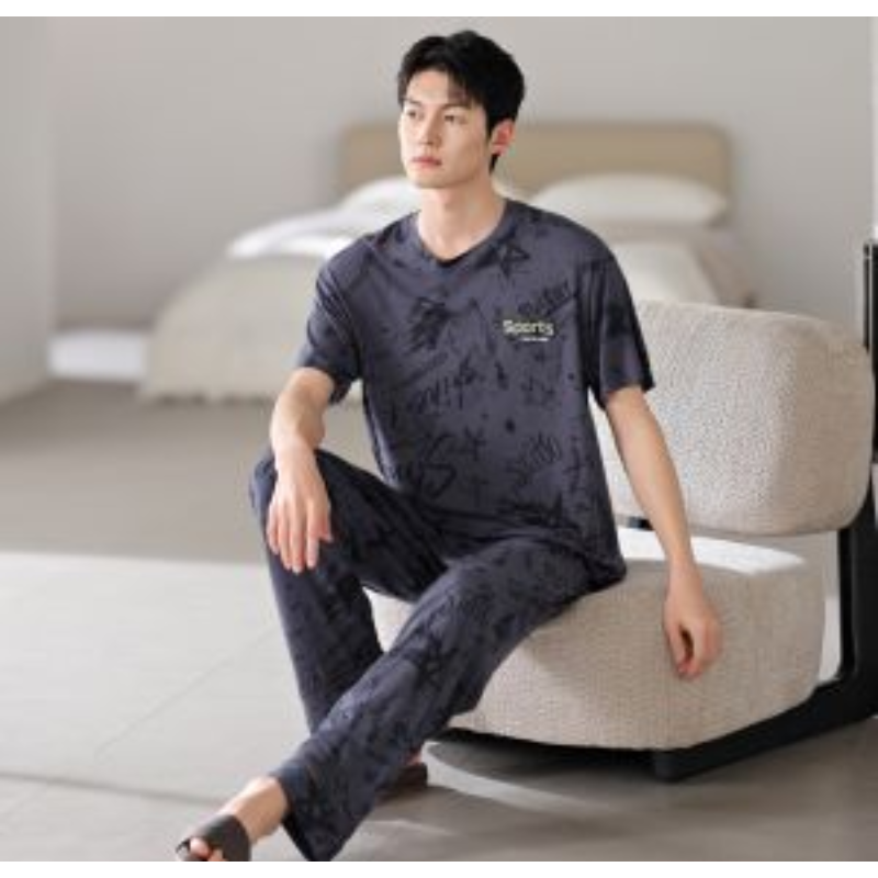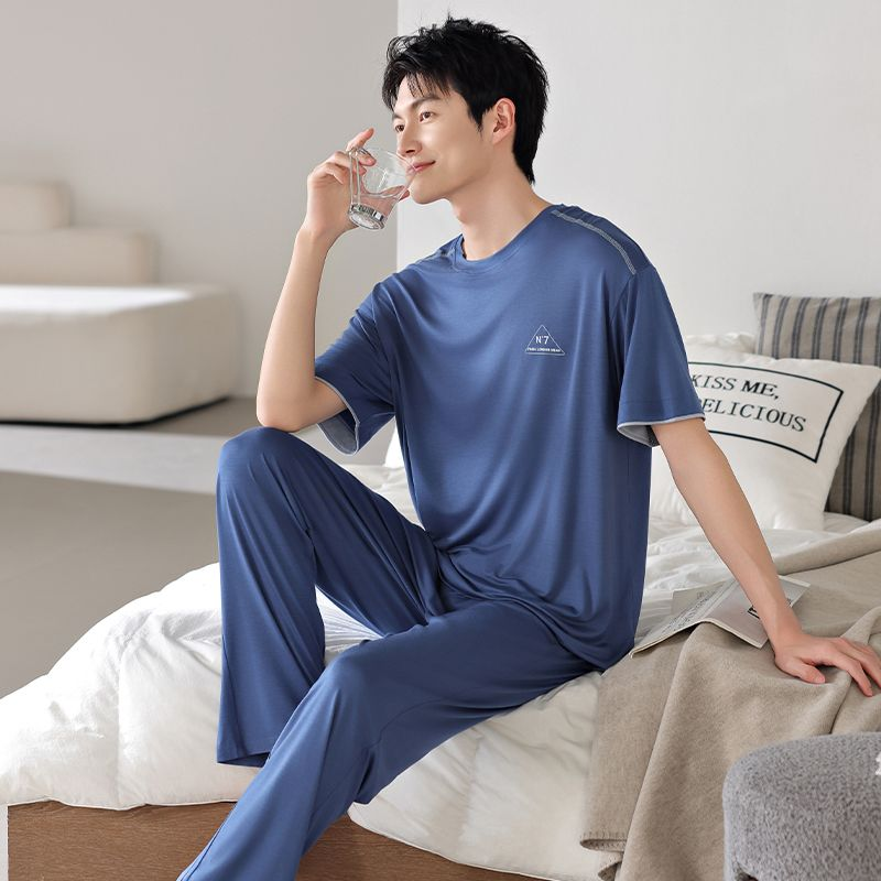 长裤 家居服男款 夏天夏款 浪莎睡衣男士 套装 莱赛尔短袖 加大码 夏季