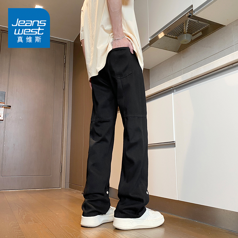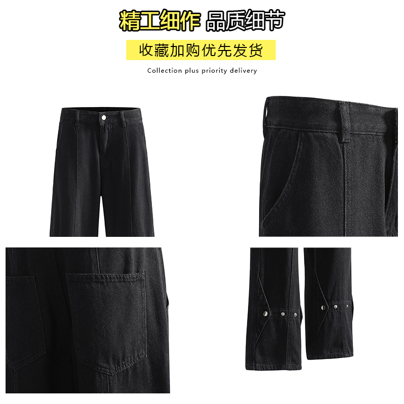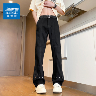 高街复古cleanfit痞帅微喇阔腿裤 春秋潮牌美式 男款 马克华菲牛仔裤