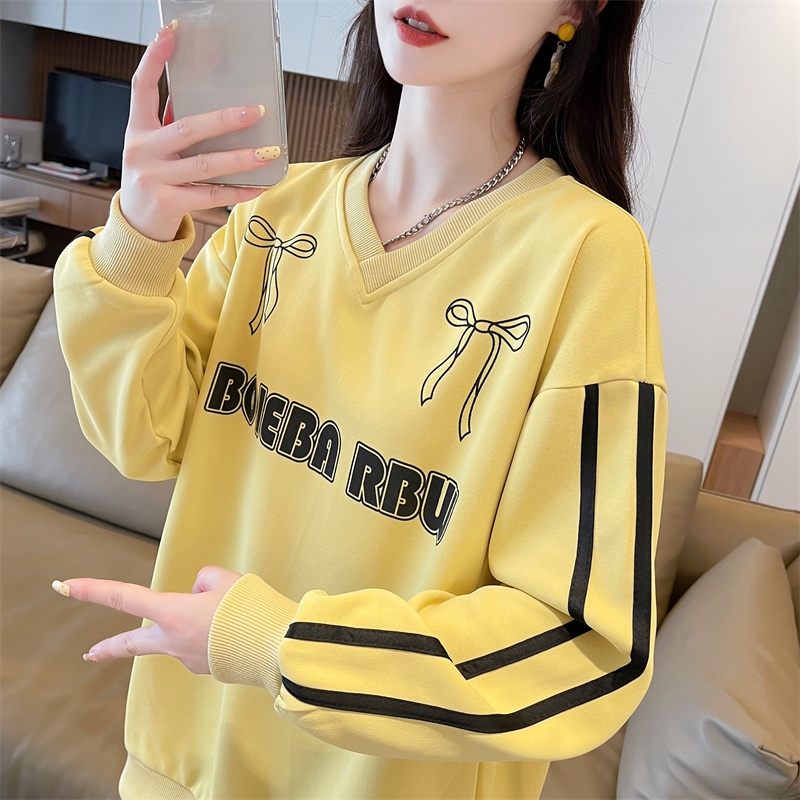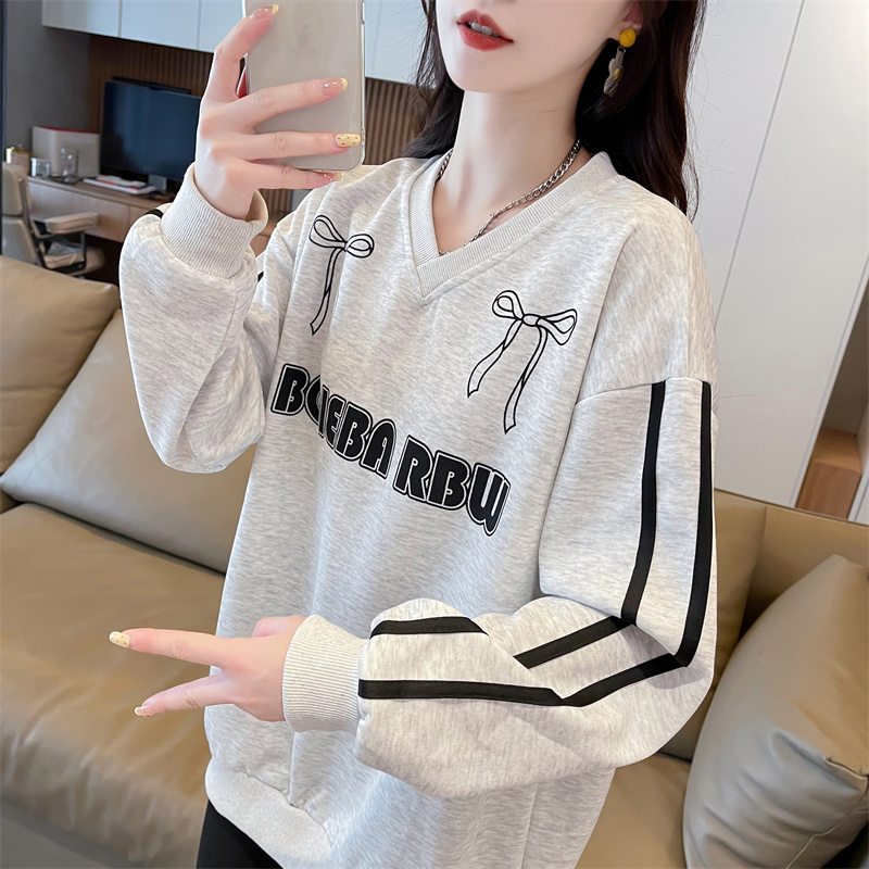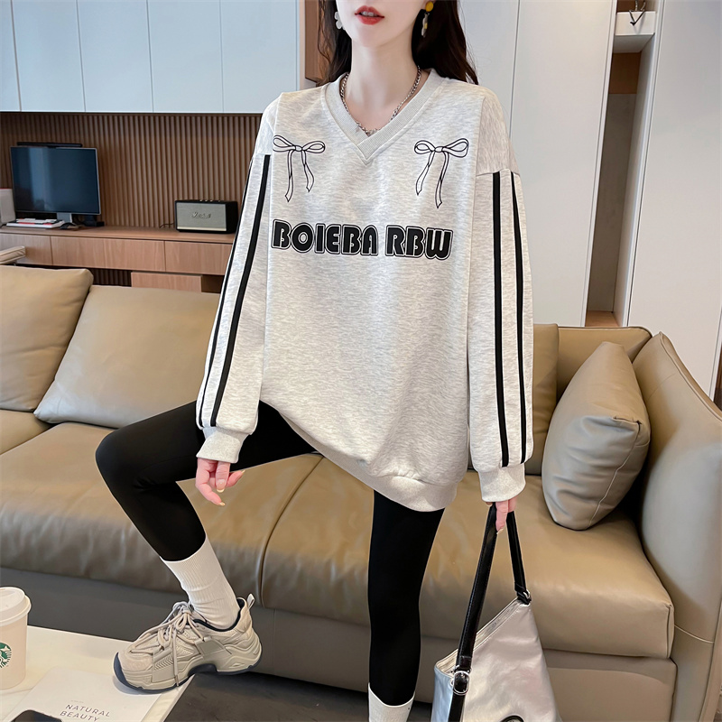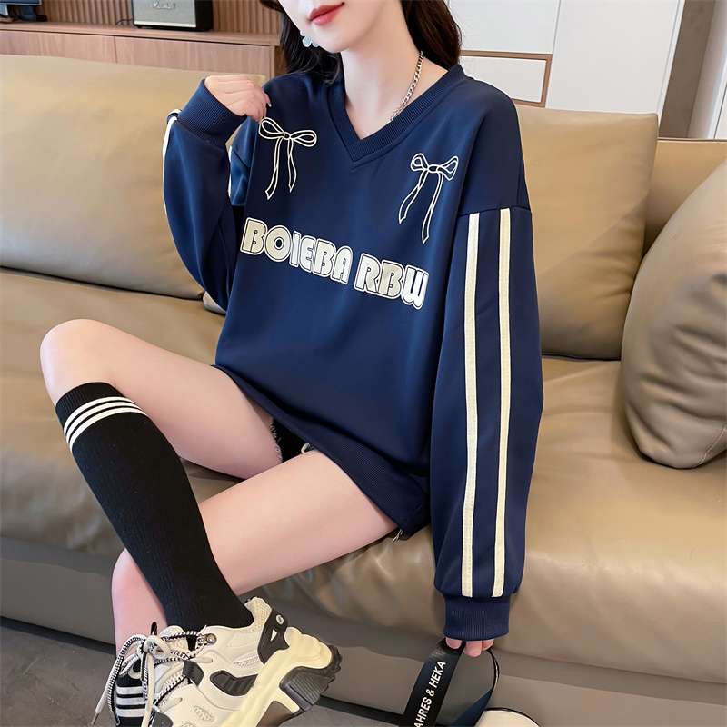韩版 薄款 宽松大码 胖mm慵懒风中长款 上衣外套 女装 V领卫衣女春秋季