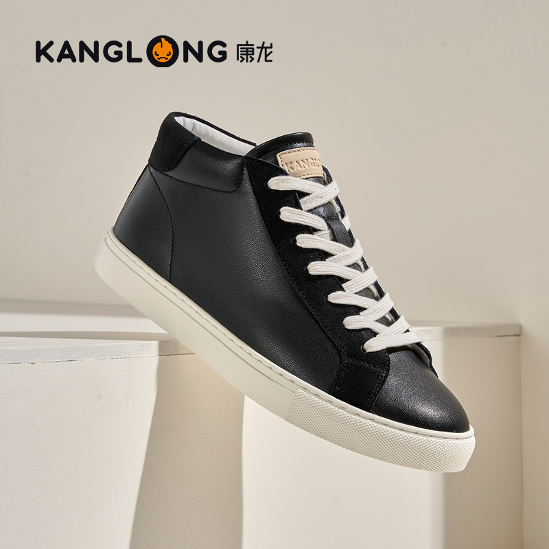 运动鞋 高帮休闲鞋 秋冬新款 子学生厚底男鞋 皮面鞋 征服鸿星尔克板鞋