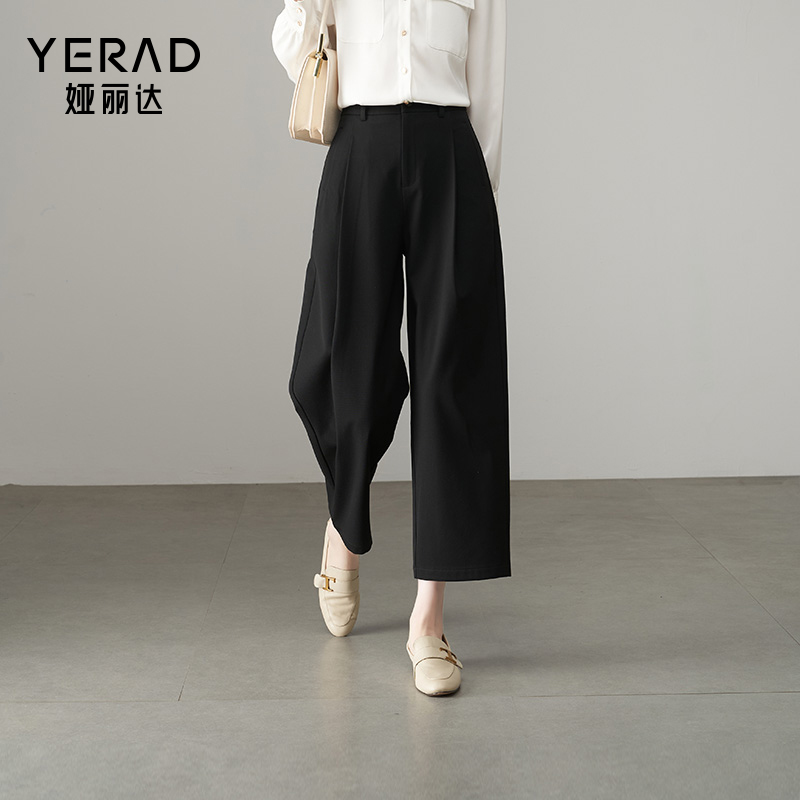 女2025春新款 黑色直筒裤 裤 西装 子小个子休闲裤 娅丽达九分阔腿裤