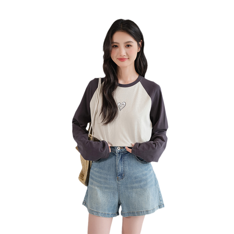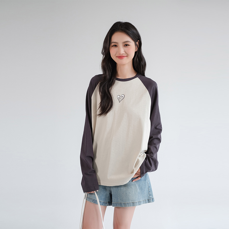 女装 蓝若水大码 秋季 新品 T恤上衣 印花插肩袖 奥代尔双纱打底衫