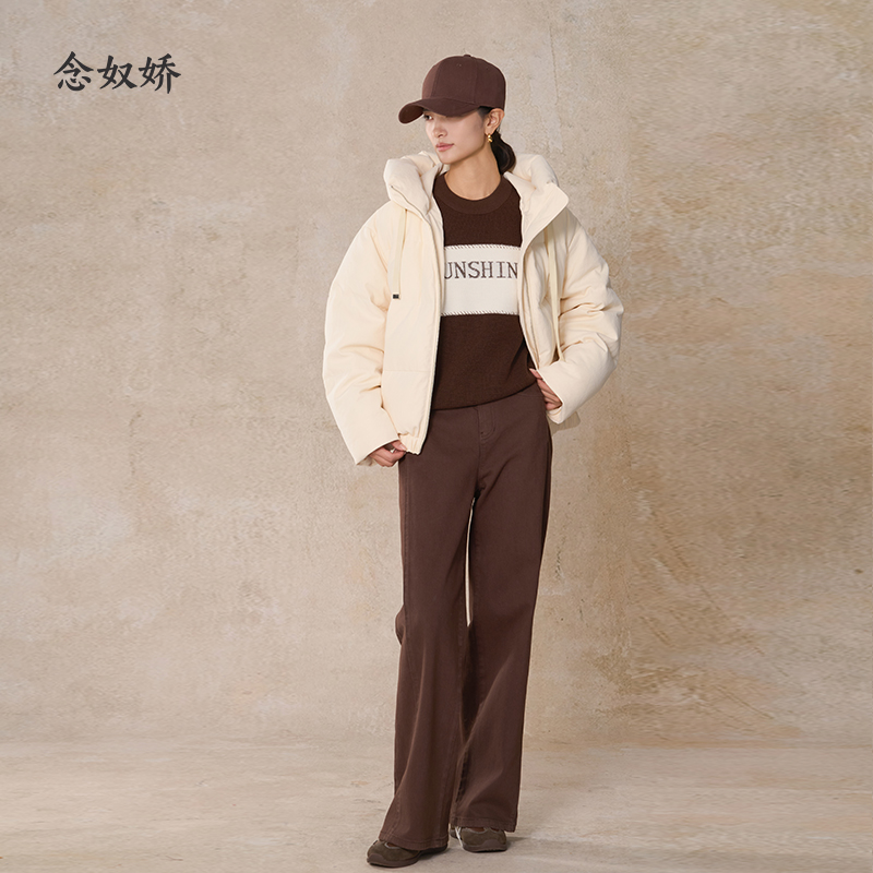 外套女 宽松插肩毛衣开衫 NOA真维斯拉链高领加厚针织上衣 2025秋季