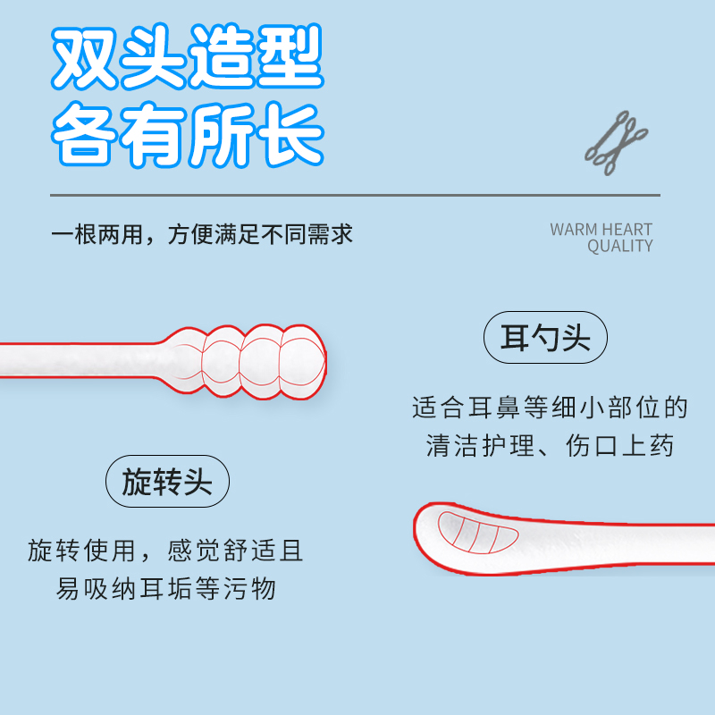 稳健医用棉签家用化妆消毒医疗棉球棉签一次性清洁掏耳朵双头无菌
