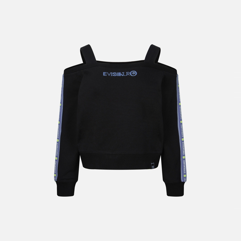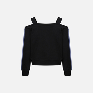 EVISUKURO女士商标印花时尚 露肩卫衣女 潮流宽松长袖