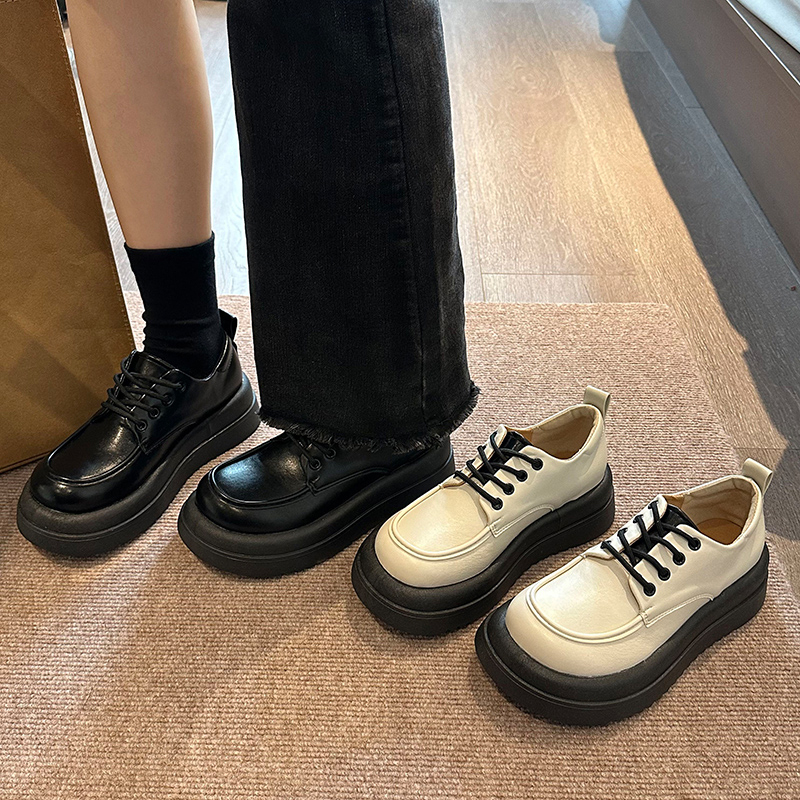仙女风瓢鞋 秋季 浅口百搭中跟奶奶鞋 大码 真皮单鞋 女鞋 粗跟2025新款