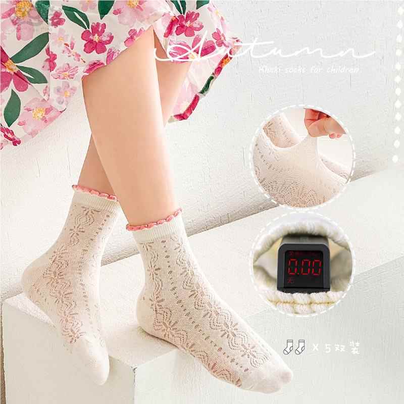 儿童袜子夏季 女童棉短袜透气网眼女宝宝花边公主袜春秋童袜 薄款