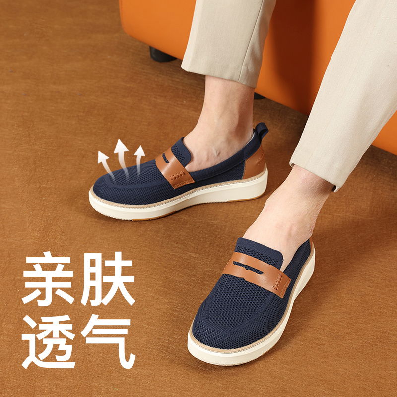 百搭秋款 Pansy盼喜日本男鞋 透气一脚蹬轻便舒适飞织乐福休闲鞋