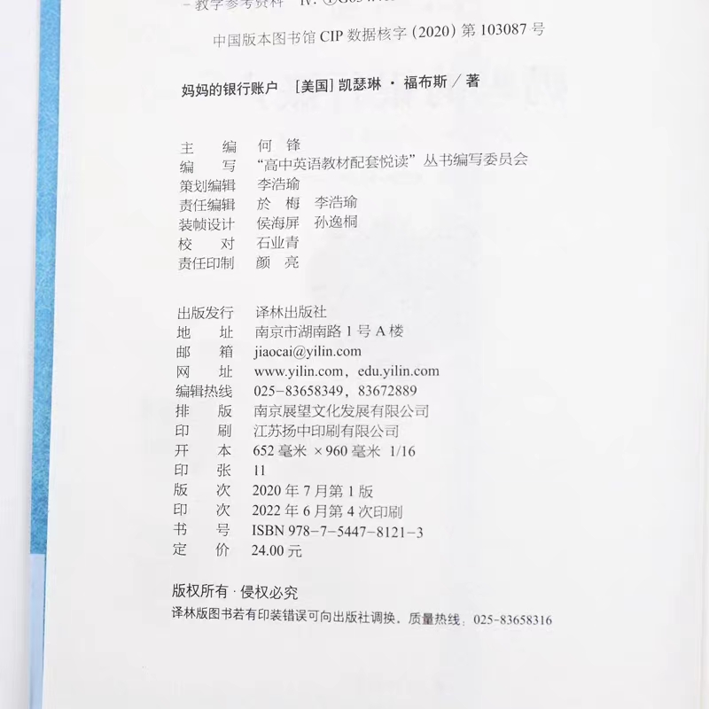 名著同步阅读 高中高一英语教材配套悦读系列英文版 配套译林版 高中英语教材必修第一册译林出版 妈妈 社凤凰新华书店正版 银行账户