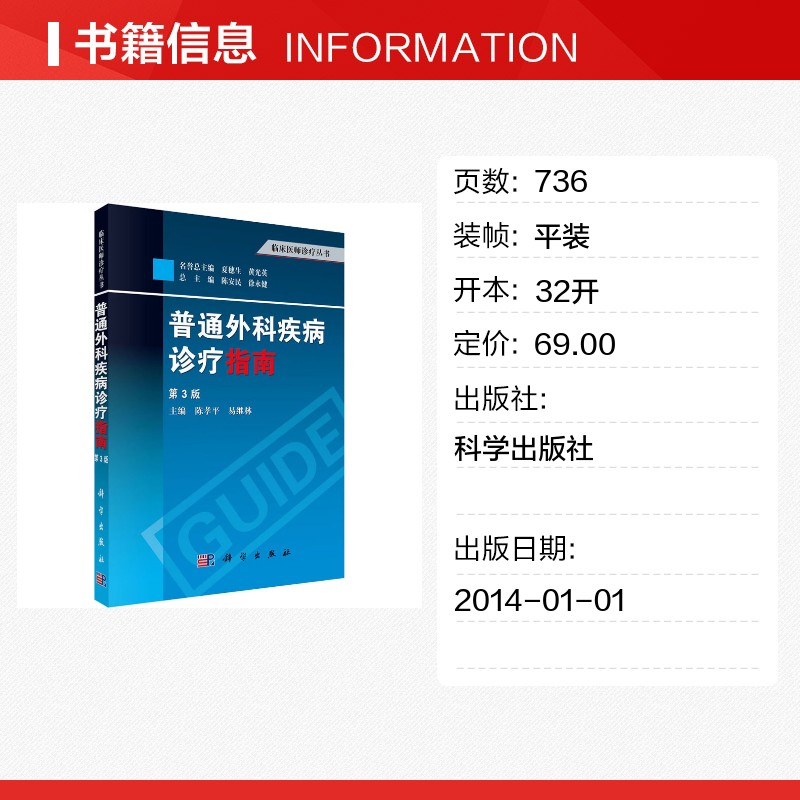 图书籍 社 易继林 编 外科学生活 等 陈孝平 陈安民 科学出版 普通外科疾病诊疗指南 新华书店正版 第3版