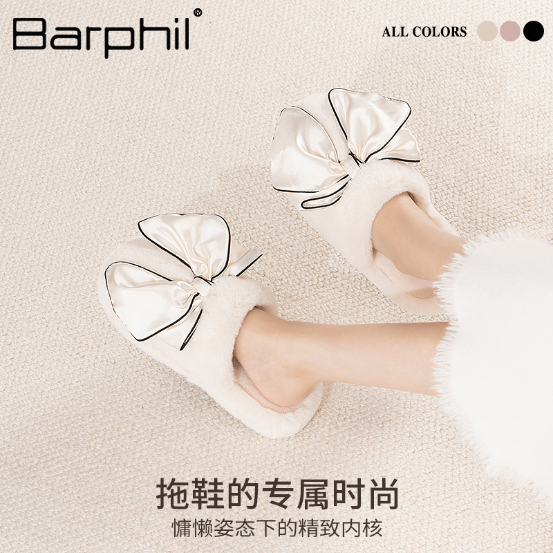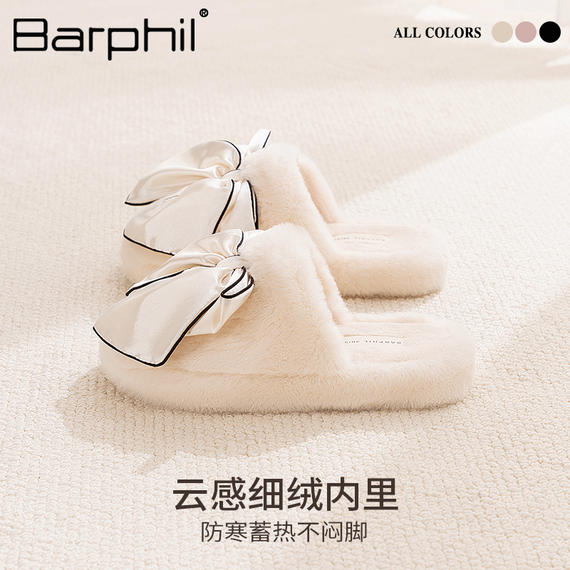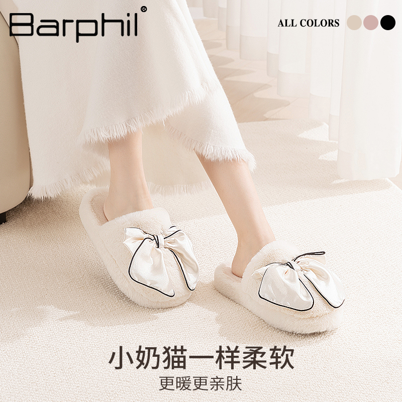 室内家居用厚底踩屎感棉拖 2025新款 蝴蝶结毛毛绒棉拖鞋 女士秋冬季
