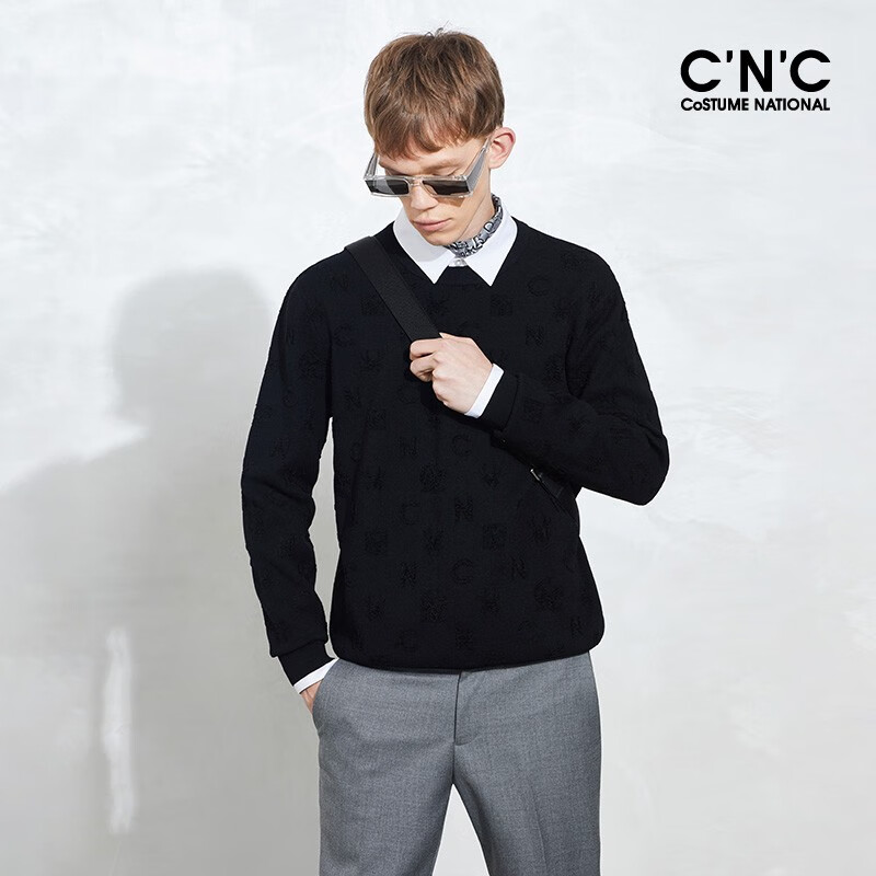 奥莱花版 轻奢毛衣男冬款 图案LOGO长袖 秋冬新品 圆领针织衫 CNC男装