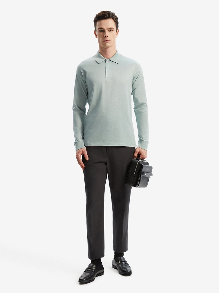 翻领休闲上衣05312790 纯棉双面布纯色气质长袖 佐丹奴Polo衫 女新款