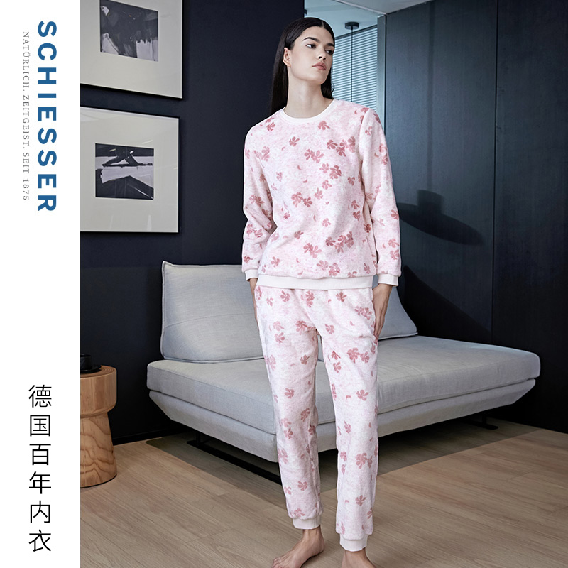海岛绒可外穿家居服 简约薄款 睡衣女秋冬季 保暖珊瑚绒女士睡衣套装