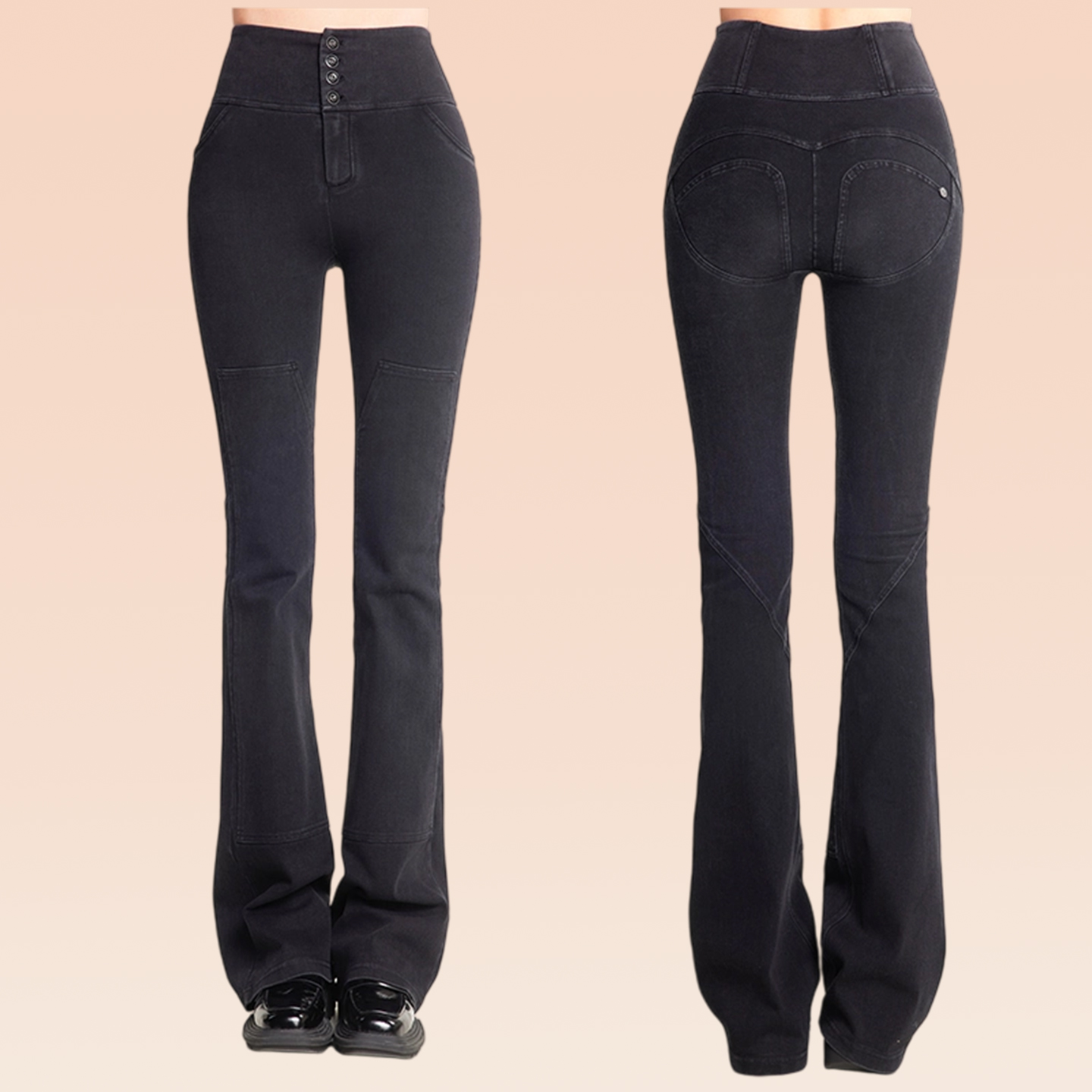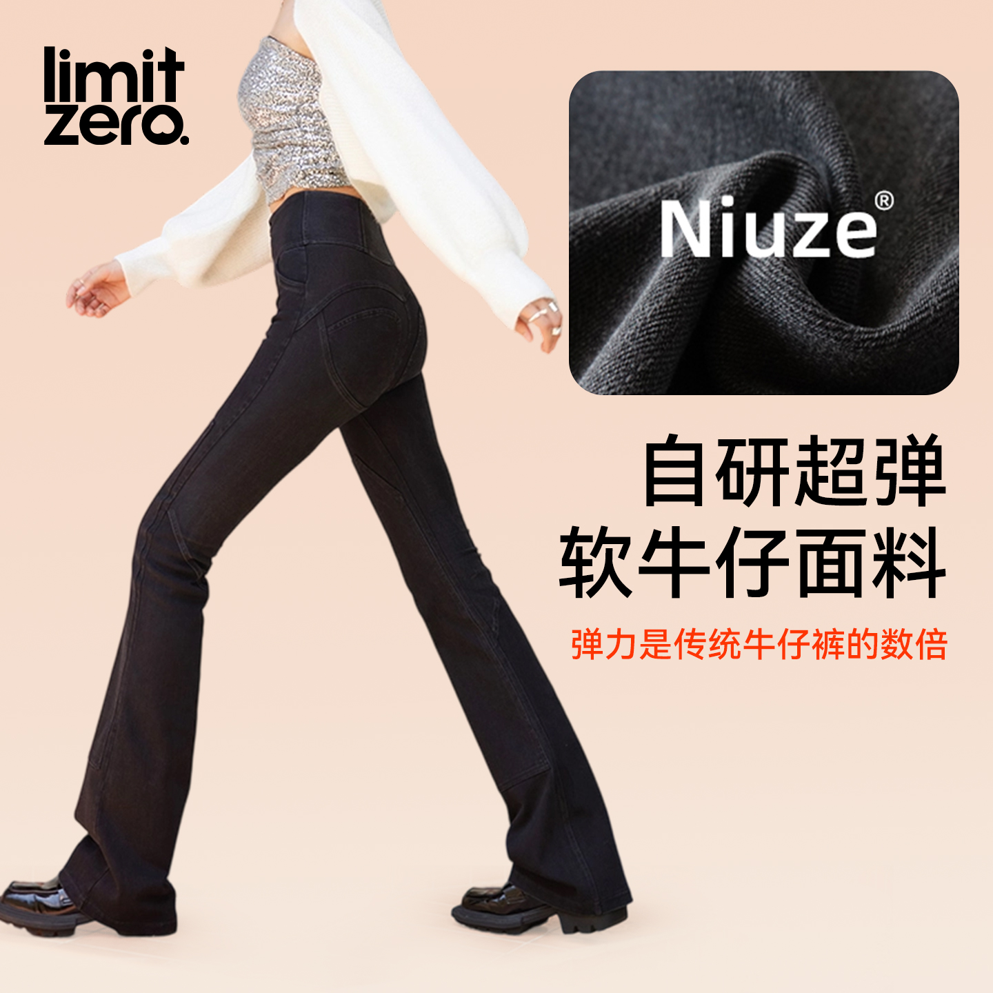 高弹收小肚子微喇叭裤 高腰修身 女秋季 零限黑色强力收腹提臀牛仔裤