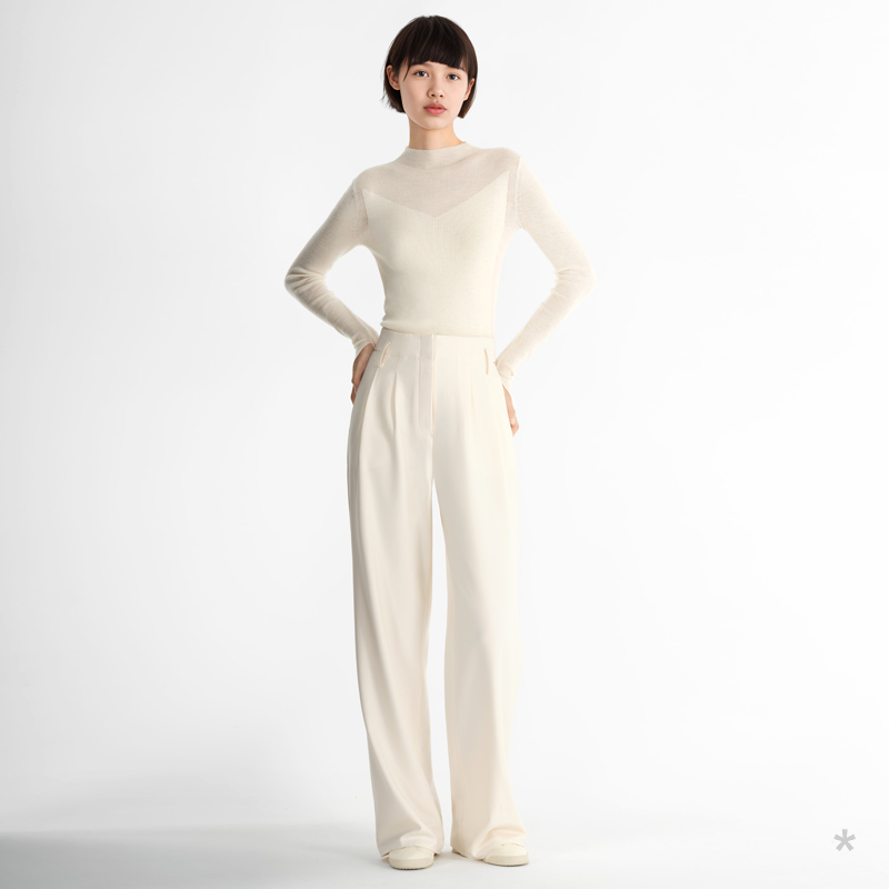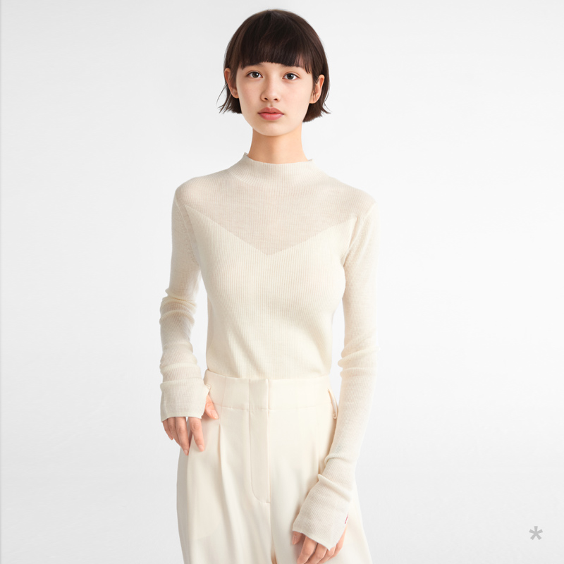 半透设计明媚 白色半高领羊毛薄针织 小着浅秋 HB21